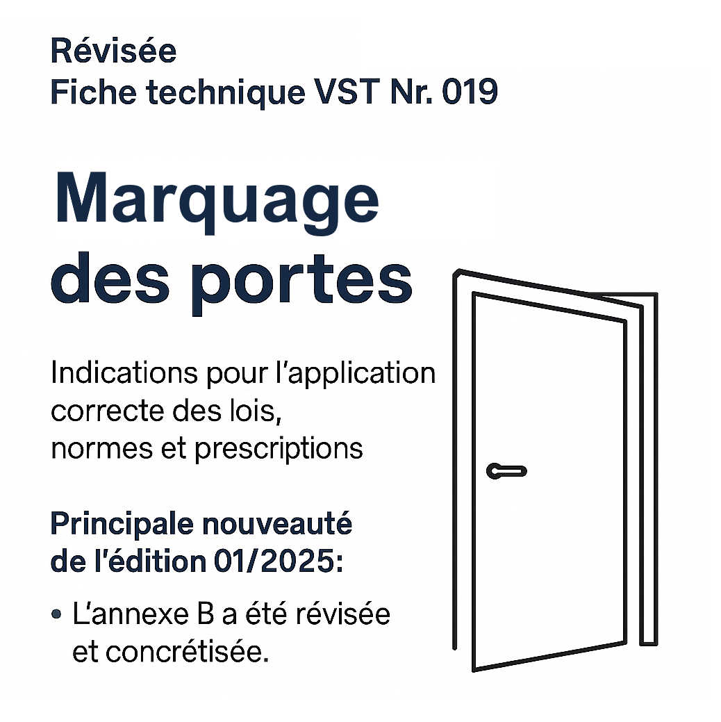 L’Association suisse de la branche des portes (VST) a révisé la fiche n° 019 sur le marquage des portes dans son édition 01/2025.
